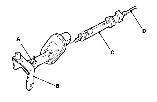 6. Remove the fuel fill door opener cable (D) from inside the body.