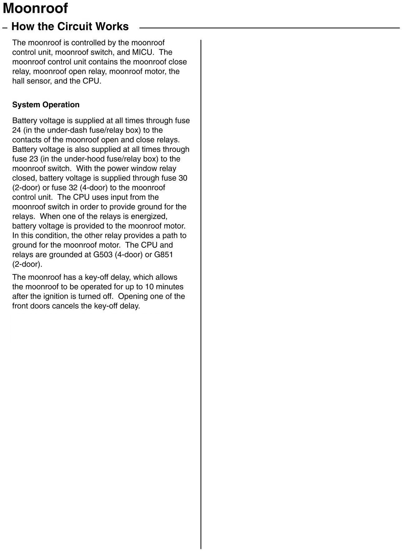 Sunroof / Moonroof: Description and Operation