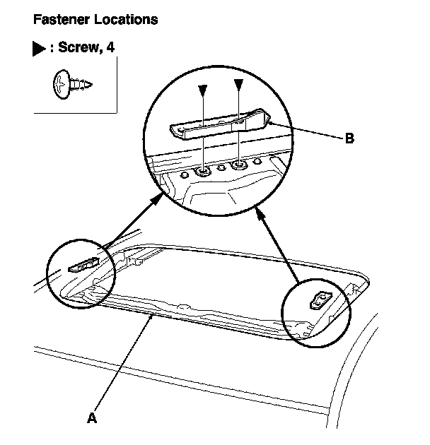 7. Remove both front sunshade base sliders (A) and both rear sunshade base sliders (B).