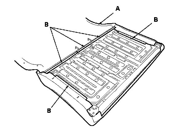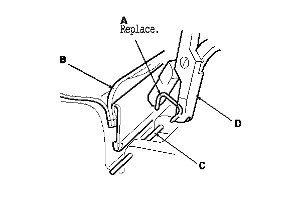 - Replace all of the upholstery rings (A) fastening the seat-back cover (B) to the pad wires (C) with new ones using commercially available upholstery ring pliers (D).