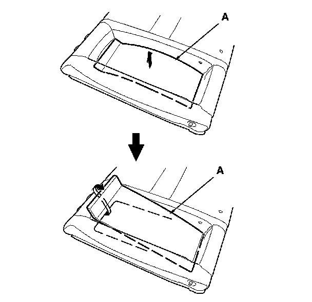 4. Left seat-back: Pull out the center portion of the armrest back panel (A) to release upper edge of the armrest back panel.