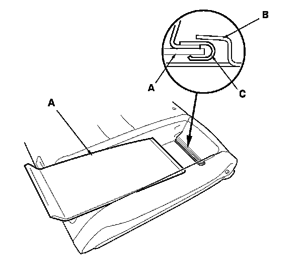 6. Release the lower hook strip (A), and detach the clips (B, C).