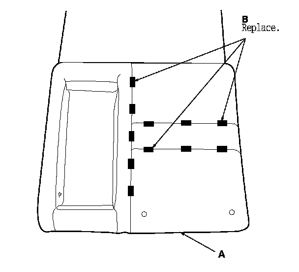 - Replace all of the upholstery rings (A) fastening the seat-back cover (B) to the pad wires (C) with new ones using commercially available upholstery ring pliers (D).