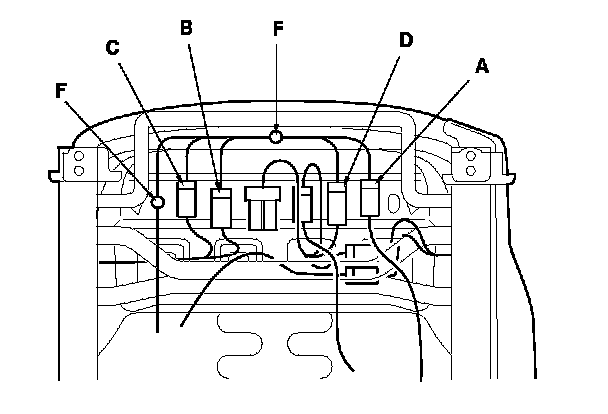 SRS components are located in this area. Review the SRS component locations, 2-door, SRS Component Location Index (2-Door) 4-door SRS Component Location Index (4-Door) and the precautions and procedures Service and Repair before doing repairs or service.
