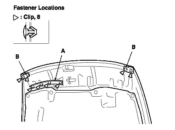 1. Detach the clips with a clip remover, then remove the hood seals (A) and the hood corner seals (B).