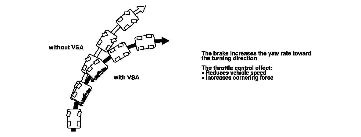 The hydraulic control has three modes of ABS action; pressure intensifying, pressure retaining, and pressure reducing. Pressure intensifying mode (VSA) is a combination of the TCS, VSA, and brake assist action.