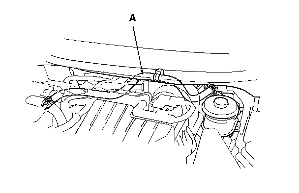 3. Disconnect the brake booster vacuum hose (A) at the booster. The check valve is built into the hose.