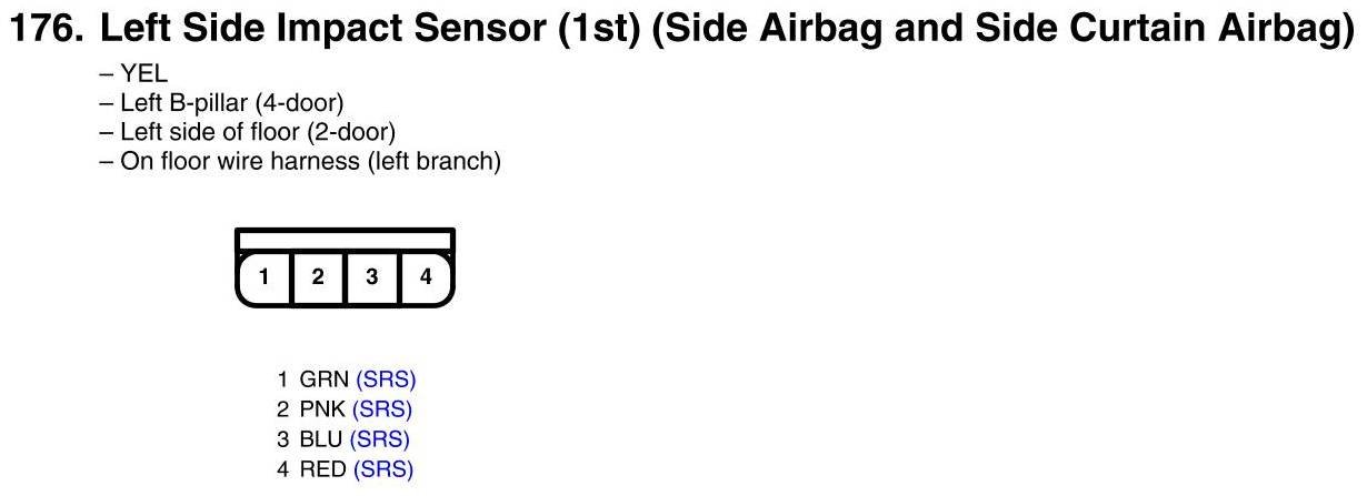 View 176 - Side Impact Sensor (1st), Left Connector View (Side Airbag And Side Curtain Airbag)