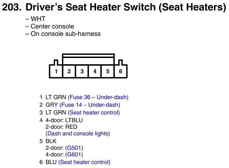 View 203 - Seat Heater Switch, Drivers Connector View (Seat Heaters)