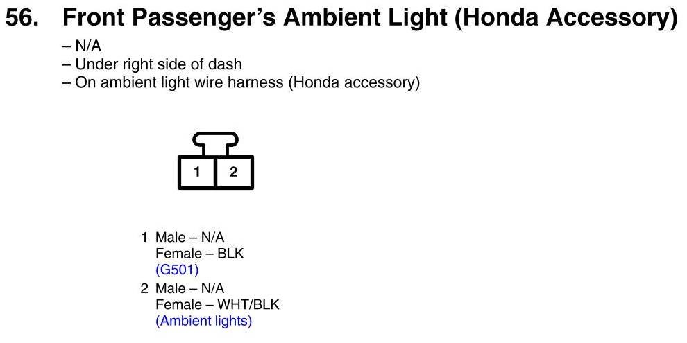 View 56 - Front Passenger's Ambient Light Connector View (Honda Accessory)