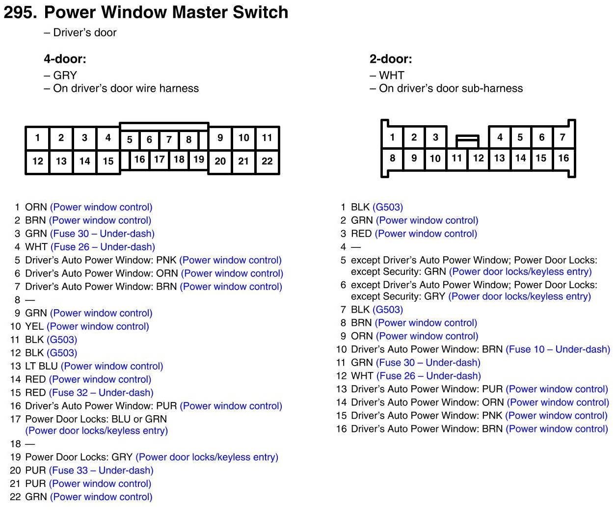 Power Window Master Switch Connector View
