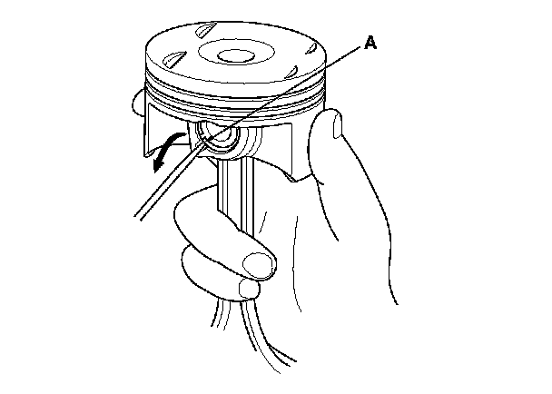 1. Install a piston pin snap ring (A) on one side.