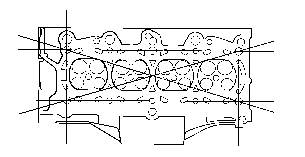 3. Check the cylinder head for warpage. Measure along the edges, and three ways across the center.