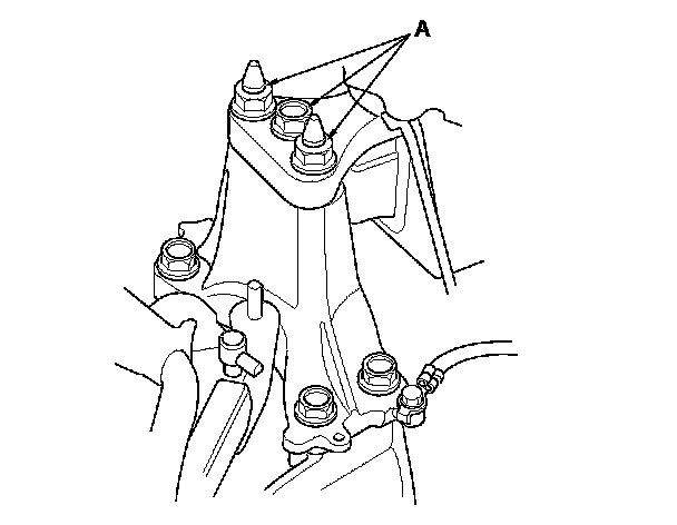 17. Install the upper torque rod (A), then tighten the new upper torque rod mounting bolts in the numbered sequence shown.