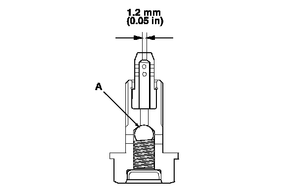 - Make sure that a 1.1 mm (0.04 in) diameter drill will go through the oil intake (1.2 mm (0.05 in) diameter). Make sure the check ball (A) moves smoothly and has a stroke of about 4.0 mm (0.16 in).