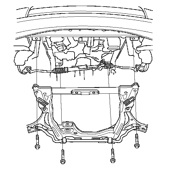 54. Raise the jack and line up the slots in the front subframe adapter arms with the bolt holes on the jack base, then securely attach them with four bolts.