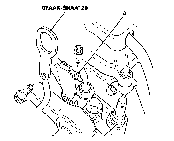 46. Attach the 1.8 support eyelet (A) to the cylinder head with the 1.8 support bolt (07AAK-SNAA500). Tighten the bolt by hand.