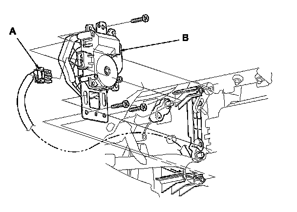 3. Disconnect the 7P connector (A) from the mode control motor (B). Remove the self-tapping screws and the mode control motor from the heater unit.