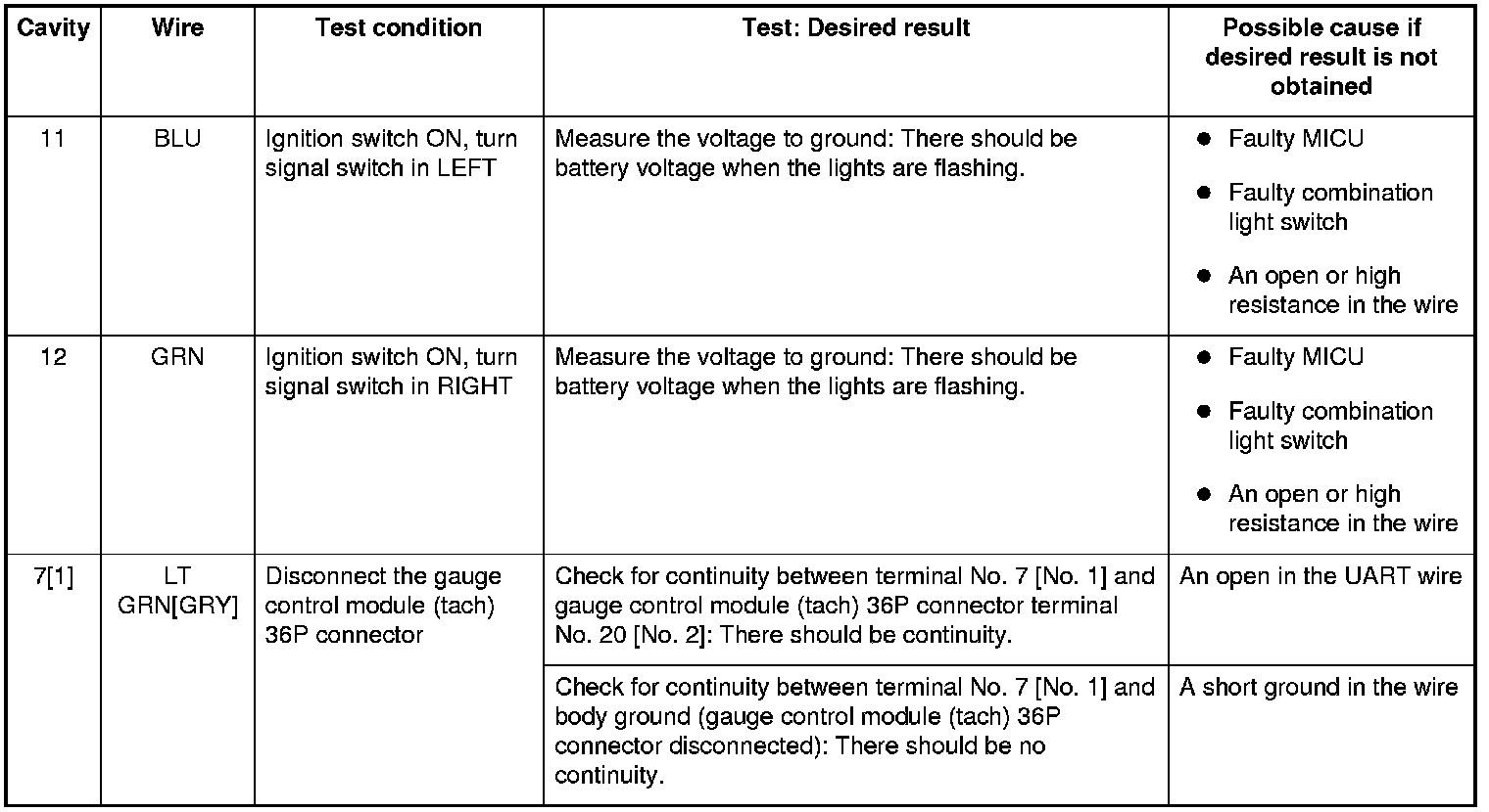 - If the input test proves OK, the gauge control module (speedo) must be faulty; replace it.