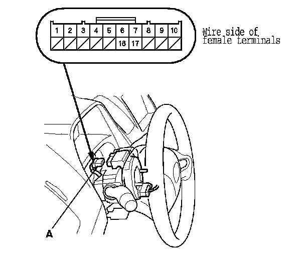 4. Reconnect the dashboard wire harness 20P connector (A) to the cable reel.
