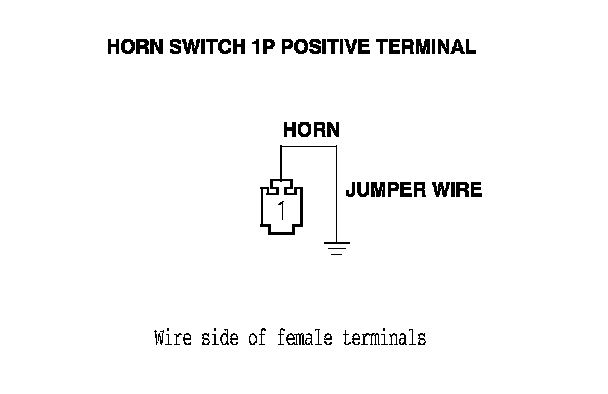 6. Using a jumper wire, connect the horn switch 1P positive terminal to body ground. The horn should sound.