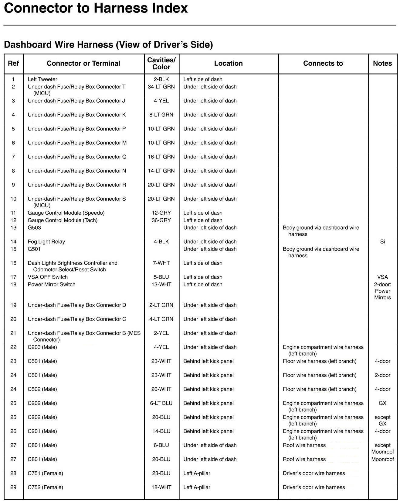 Dashboard Wire Harness (View From Driver's Side) Connector And Harness Locations