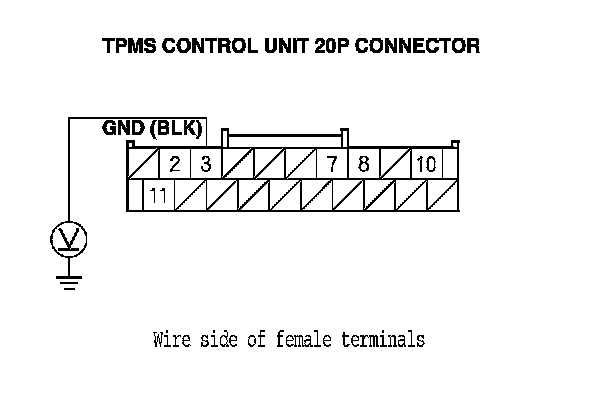 20. Measure the voltage between body ground and TPMS control unit 20P connector terminal No. 3.