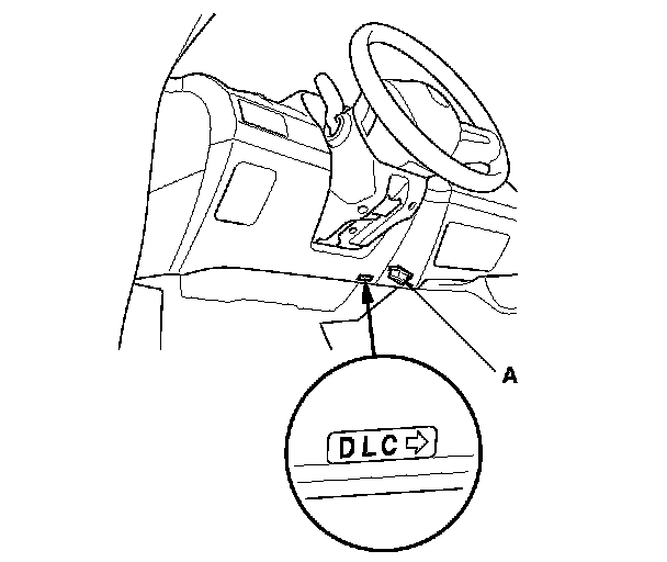 2. Connect the HDS to the data link connector (DLC) (A), then turn the ignition switch to ON (II).