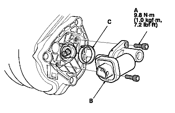 3. Install the parts in the reverse order of removal with a new O-ring (C).