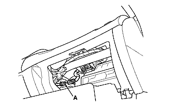 5. Remove the glove box, Service and Repair then disconnect the dashboard wire harness 4P connector (A) from the front passenger's airbag 4P connector.