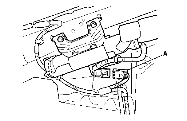 7. Disconnect both floor wire harness 2P connectors (A) from the side curtain airbag 2P connectors.