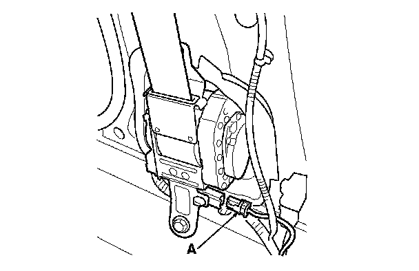 10. Disconnect both floor wire harness 4P connectors (A) from the seat belt tensioner 4P connectors. Pull the seat belt out all the way and cut it.