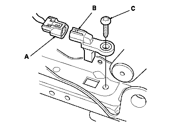 2. Connect the driver's seat position sensor harness 2P connector (C) to the driver's seat position sensor.