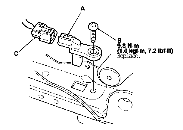 4. Remove the TORX bolt (C) using a TORX T30 bit, then remove the driver's seat position sensor.