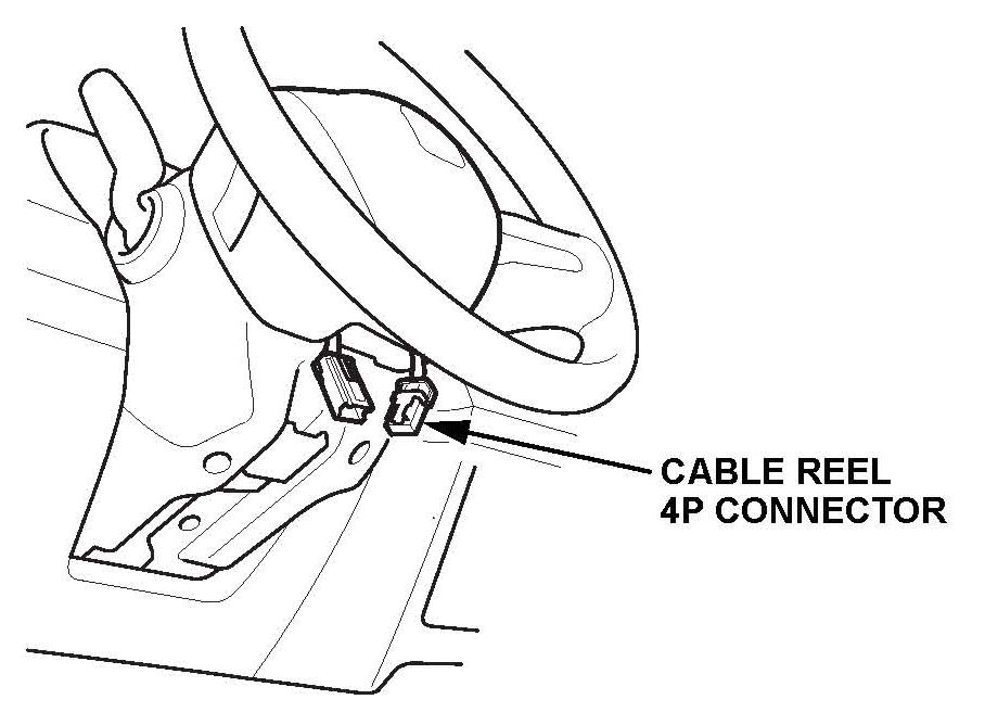 ^ Connect the cable reel 4P connector to the driver's airbag 4P connector, then reinstall the access panel on the steering wheel. Make sure the connector is properly seated in its holders.