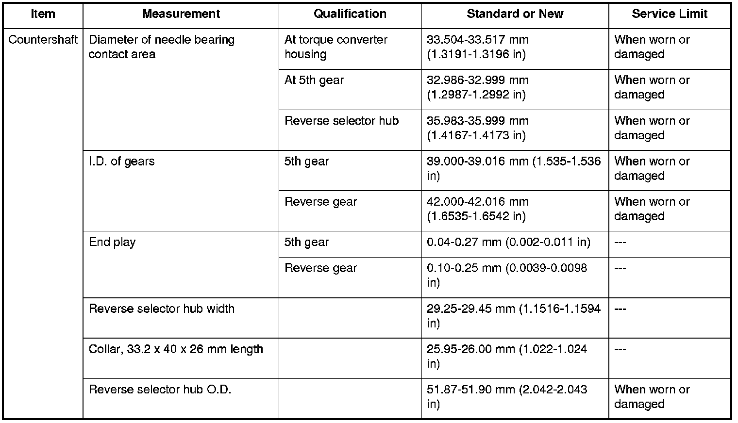 Countershaft Specifications