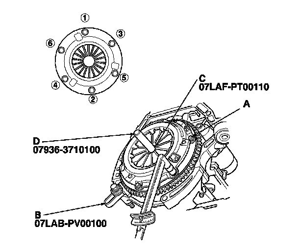 pressure plate (A) and the mounting bolts (B) finger-tight.Torque the mounting bolts (A) in a crisscross pattern. Tighten the bolts in several steps to prevent warping the diaphragm spring.