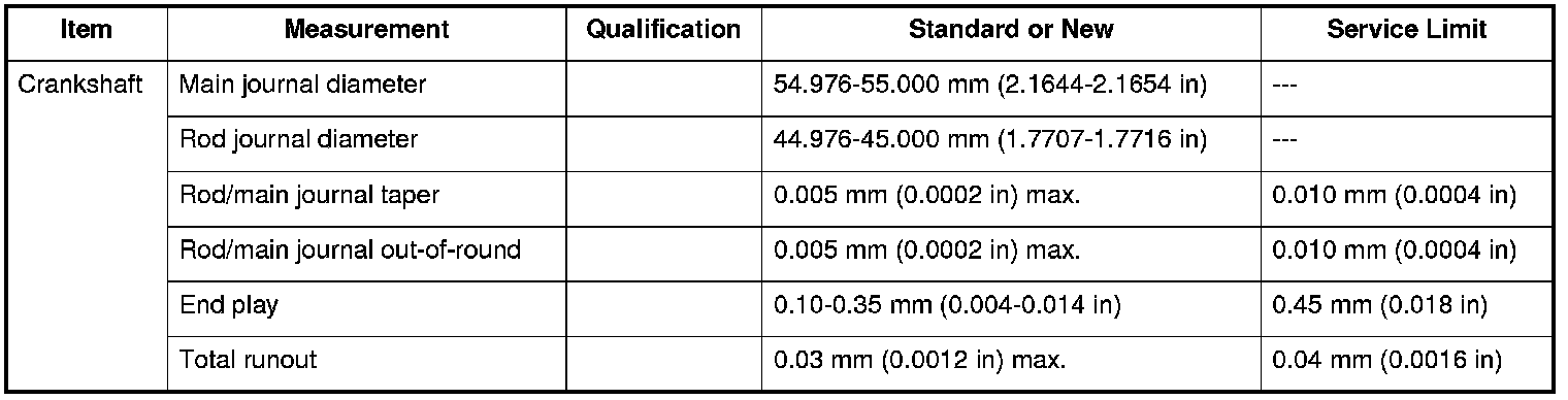 Crankshaft Specifications