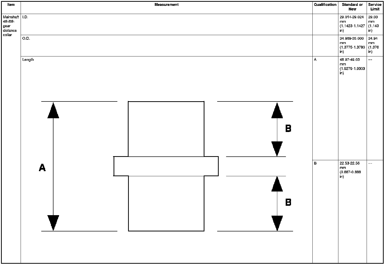 Mainshaft 4th/5th Gear Distance Collar Specifications