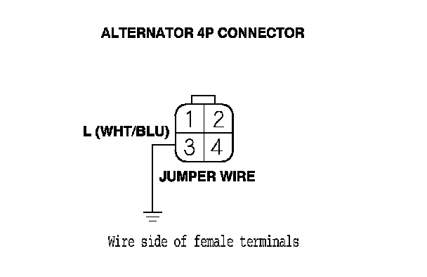 17. Connect alternator 4P connector terminal No. 3 and body ground with a jumper wire.