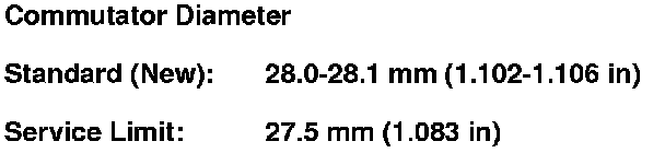 5. Check the commutator diameter with a digital caliper or dial type caliper. If the diameter is below the service limit, replace the armature.