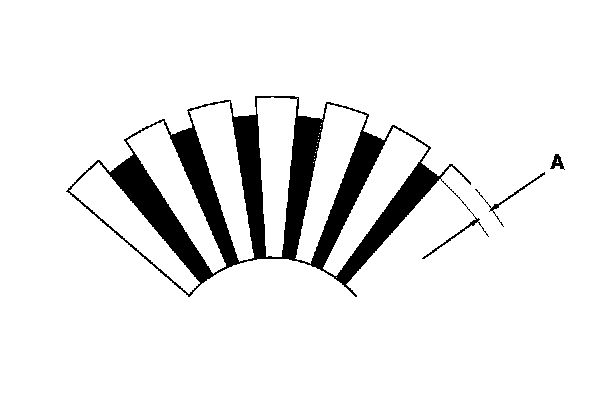 7. Use a digital caliper or dial caliper to check the mica depth (A). If the mica depth is below the service limit, replace the armature.