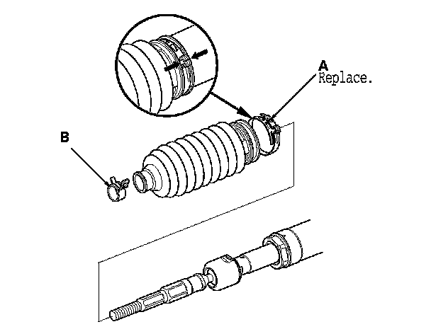 3. Remove the boot bands (A) and tie-rod clips (B).