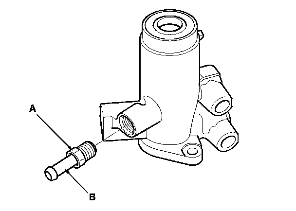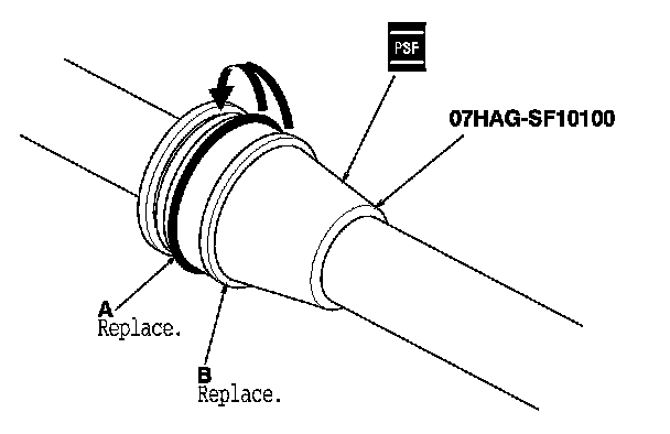 23. Loosen the 16 mm flare nut (A), and remove the return line joint (B).