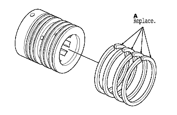 27. Using a cutter or an equivalent tool, cut and remove the four seal rings (A) from the sleeve. Be careful not to damage the edges of the sleeve grooves and outer surface when removing the seal rings.