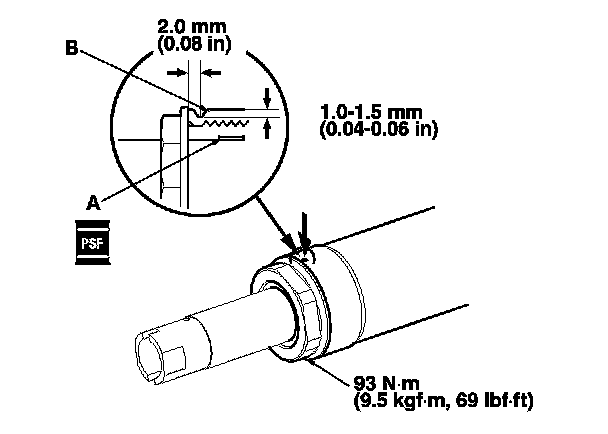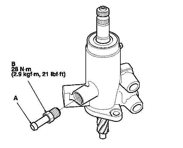 72. Coat the inside surface of the cylinder end (A) with power steering fluid, then install the cylinder end by screwing it into the cylinder (B). Tighten the cylinder end to the specified torque.