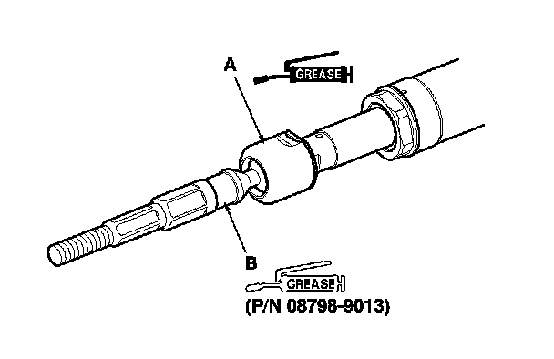 86. Apply a light coat of silicone grease (P/N 08798-9013) to the boot grooves (B) on the rack ends.