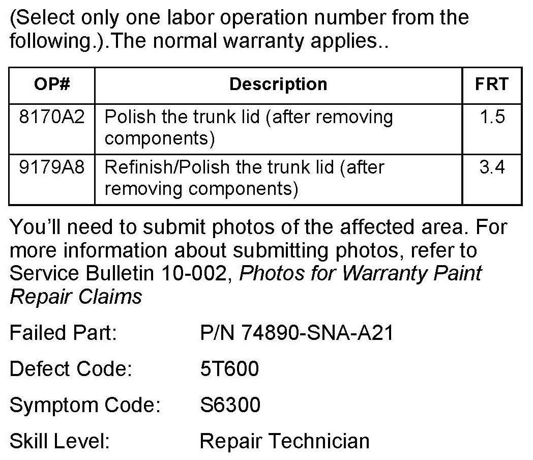 Campaign - Trunk Lid Paint Finish Warranty Extension