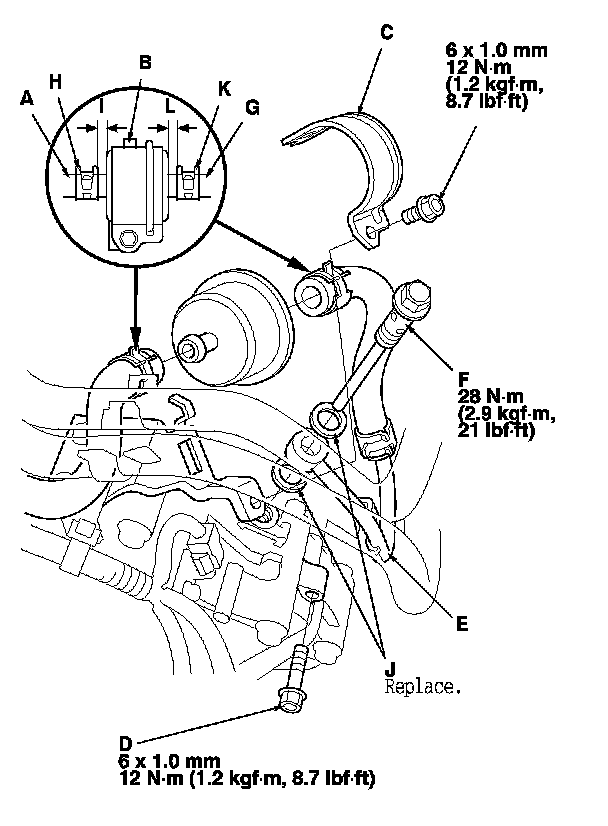 8. Install the ATF filter and the ATF inlet line/hose with the banjo bolt and new sealing washers (J).