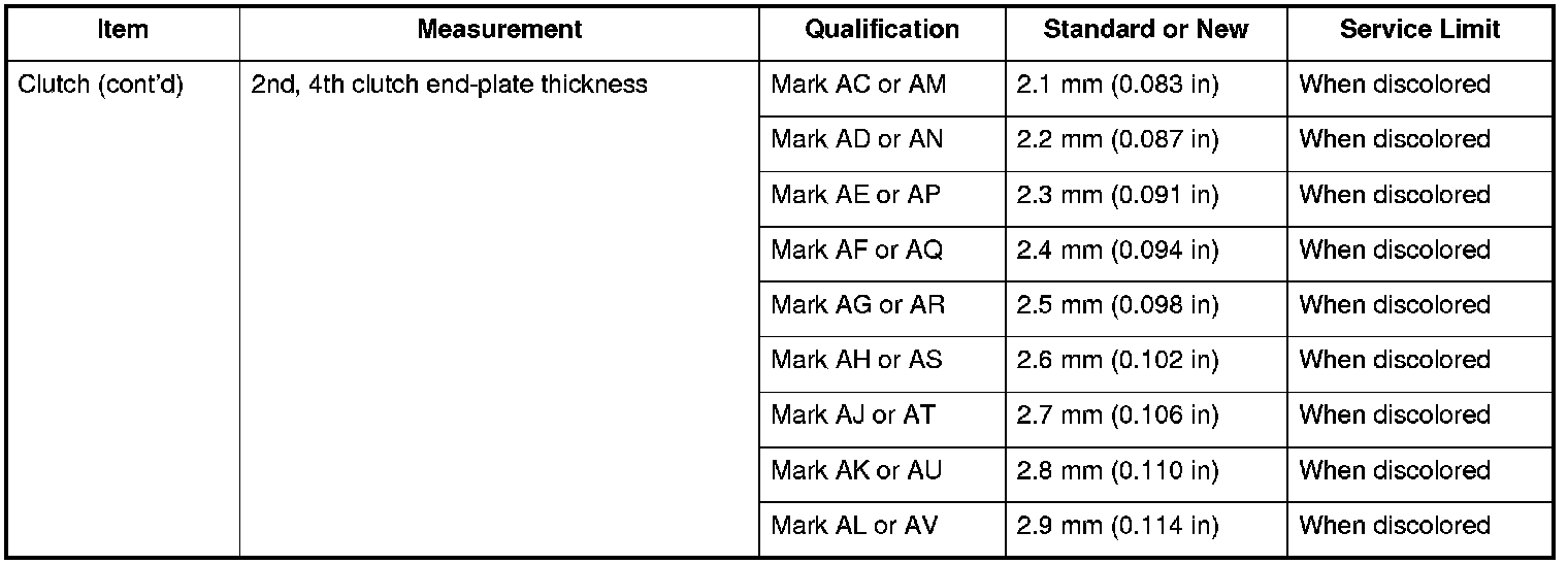 Clutch (cont'd) Specifications